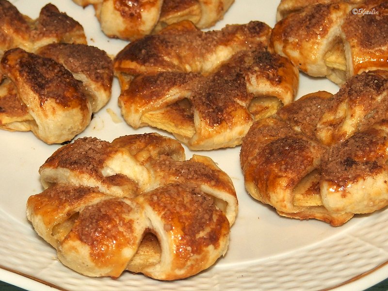 Hozzávalók: fagyasztott leveles tészta, nagyobb alma,